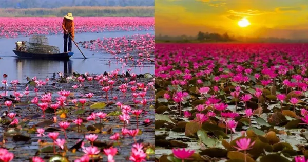Το θέαμα είναι μοναδικό σε μια λίμνη στην Ταϊλάνδη, όπου επιπλέουν στην επιφάνεια της εκατομμύρια ροζ άνθη από λωτούς. Η λίμνη ονομάζεται Νογκ Χαν Καμπαουάμπι (Nong Han Kumphawapi) και βρίσκεται στη βορειοανατολική Ταϊλάνδη.