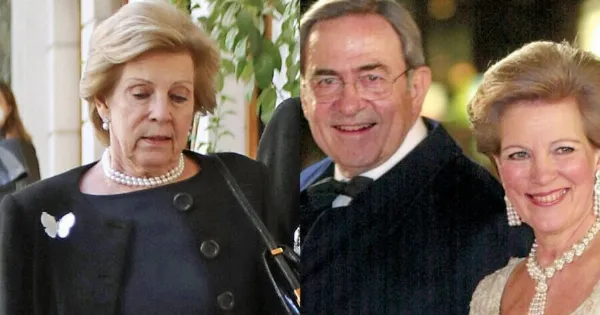 Η Άννα Μαρία η οποία είναι 77 ετών, εμφανίστηκε με γκρι φούστα, μπορντώ σακάκι, ανοιχτόχρωμο πουκάμισο και animal print φουλάρι στον λαιμό της.