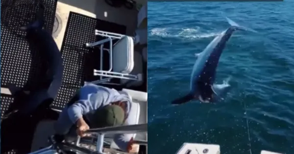 Συγκλονίζουν τα πλάνα από τη στιγμή που ένας από τους πιο γρήγορους καρχαρίες στον κόσμο, πήδηξε και “προσγειώθηκε” μέσα στο σκάφος ενός ψαρά.
