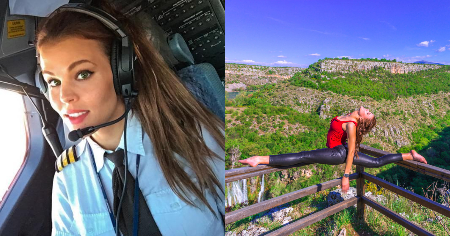 Στον λογαριασμό της στο Instagram @flymeyoga η γοητευτική πιλότος επιδεικνύει την ευλυγισία της και τους καρπούς της επίμονης άσκησής της.