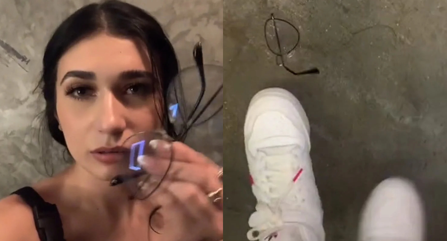 Στο video φαίνεται να τα κρατάει και να λέει: «Στα κορίτσια που έφυγαν χωρίς να πληρώσουν τον λογαριασμό τους. Ξεχάσατε τα γυαλιά σας», την ώρα που τα πετάει στο έδαφος και τα πατάει, σπάζοντάς τα.