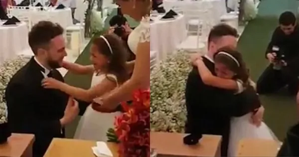 Σε μια συγκινητική στιγμή πριν μερικούς μήνες ο 37χρονος γαμπρός δείχνει στην νέα θετή 6χρονη κόρη του, ένα δαχτυλίδι και της ζητάει να είναι το παιδί του για τη υπόλοιπη ζωή του, μπροστά στους καλεσμένους στο γάμο του με τη μητέρα της.