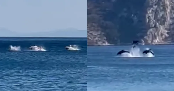 Όσοι βρίσκονταν εκεί δεν έκρυψαν τον ενθουσιασμό τους και άρχισαν να απαθανατίζουν τον εκπληκτικό “χορό” τους. Υπήρχαν μάλιστα και εκείνοι που δεν δίστασαν να βουτήξουν προκειμένου να βρεθούν κοντά στα δελφίνια.