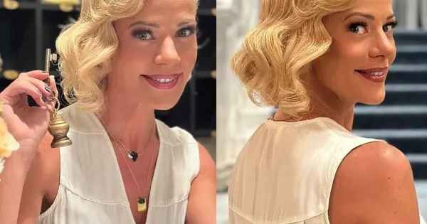 Η Ζέτα Μακρυπούλια πόζαρε στους χώρους του ξενοδοχείου με look εποχής και ανέβασε τις φωτογραφίες στον προσωπικό της λογαριασμό στο Instagram.