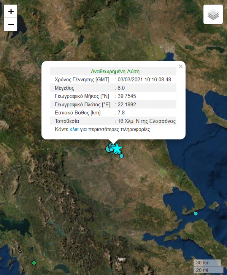 Ελασσόνα σεισμός: Μεγάλος σεισμός 6 ρίχτερ κοντά στην Ελασσόνα – Έγινε αισθητός στη Θεσσαλονίκη