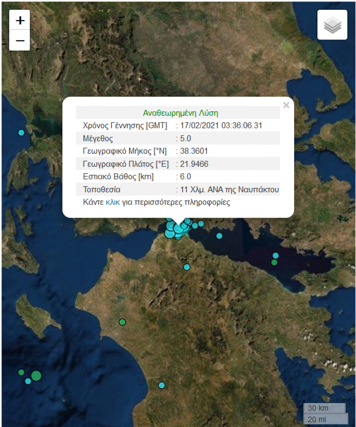 Σεισμός Ναύπακτος: Διπλός σεισμός έλαβε χώρα κοντά στη Ναύπακτο νωρίς το πρωί. Σύμφωνα με την αναθεωρημένη λύση του Γεωδυναμικού Ινστιτούτου Αθηνών. Ο πρώτος σεισμός ήταν της τάξης των 5 βαθμών στην κλίμακα ρίχτερ και έλαβε χώρα στις 5:36. Η σεισμική δόνηση είχε εστιακό βάθος 6 χιλιόμετρα ενώ η ακριβής τοποθεσία ήταν 11 χιλιόμετρα ανατολικά νοτιοανατολικά της Ναυπάκτου.