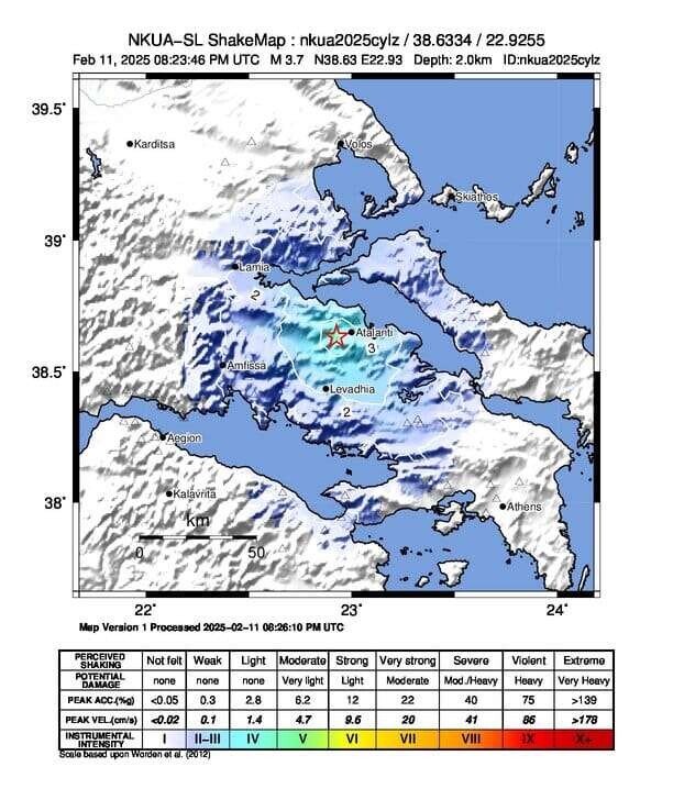 Σεισμός 3,6 Ρίχτερ σημειώθηκε το βράδυ της Τρίτης (11/02/2025) στην Αταλάντη και έγινε αισθητός και στην Αθήνα.