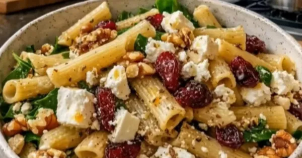Η σαλάτα ζυμαρικών είναι μια δροσερή, θρεπτική και πολύχρωμη επιλογή που ταιριάζει σε κάθε τραπέζι. Συνδυάζει τη φρεσκάδα των λαχανικών με την πλούσια γεύση του τυριού και τη γλυκιά πινελιά των αποξηραμένων φρούτων, δημιουργώντας ένα ισορροπημένο και ιδιαίτερα απολαυστικό πιάτο.