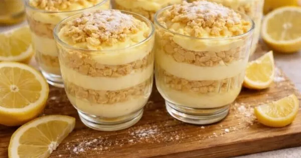 Αν θέλεις ένα ελαφρύ, δροσερό και εύκολο γλυκό, αυτό το επιδόρπιο σε ποτήρι με κρέμα λεμονιού είναι ιδανικό. Συνδυάζει την οξύτητα του λεμονιού με την απαλότητα της κρέμας και τη βάση από μπισκότο, δημιουργώντας ένα γλυκό που εντυπωσιάζει.