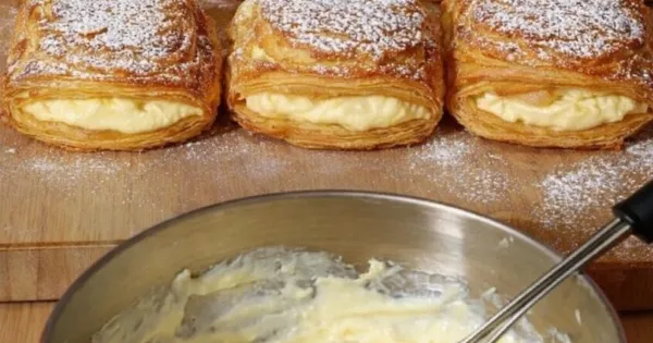 🍮 Αυτό το γλυκό είναι παρόμοιο με τα διάσημα μιλφέιγ (mille-feuille) της γαλλικής ζαχαροπλαστικής και συνδυάζει τραγανή υφή με απαλή κρέμα σε κάθε μπουκιά.