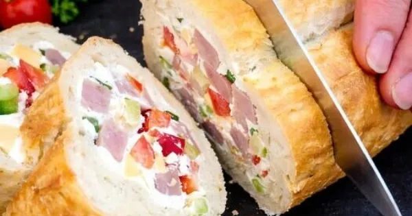 - Γεμίζουμε τη μπαγκέτα πιέζοντας καλά.