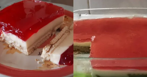 Για τις λιγούρες: Λαχταριστό γλυκό ψυγείου με αφράτη κρέμα, μπισκοτένια βάση και επικάλυψη ζελέ