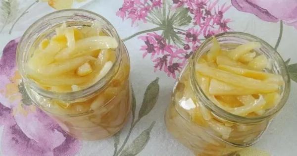 - Κόβουμε τη φλούδα σε μπαστουνάκια και τη βάζουμε σε νερό.