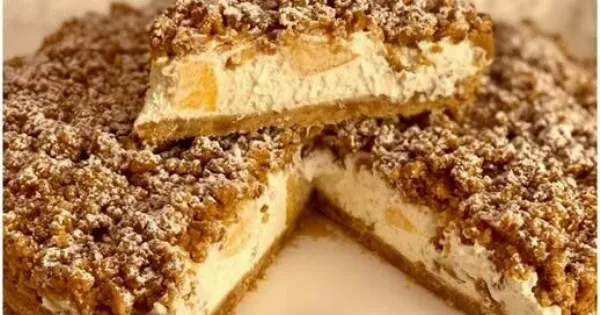 Η βάση από μπισκότο είναι τραγανή και βουτυράτη, ενώ η κρέμα είναι απαλή, δροσερή και βελούδινη. Τα ροδάκινα δίνουν μια φυσική γλυκύτητα και φρεσκάδα που ισορροπεί τέλεια το αποτέλεσμα, κάνοντάς το ιδανικό για κάθε στιγμή της ημέρας.