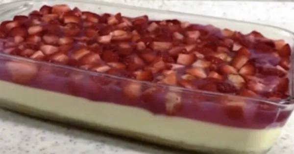 Με βάση μπισκότου, κρέμα βανίλιας και φράουλες, θυμίζει cheesecake αλλά γίνεται πανεύκολα στο σπίτι.