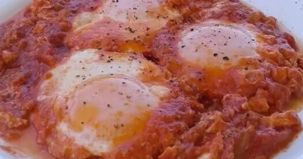 Με ντομάτα, κρεμμύδι, πιπεριά και αυγά μάτια που ψήνονται μέσα στη σάλτσα, γίνεται ένα φαγητό που θέλει πολύ ψωμί για βούτες.