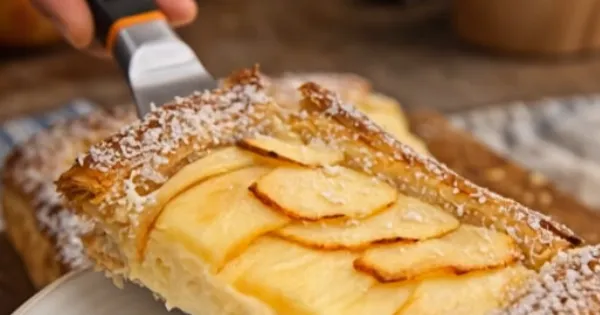 Ένα υπέροχο, αρωματικό γλυκό με μήλα και κρέμα ζαχαροπλαστικής έτοιμο να το απολαύσετε!