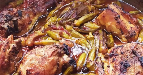 Ένα κλασικό, σπιτικό φαγητό με πλούσια γεύση και σωστή υφή. Οι μπάμιες μένουν τρυφερές και ολόκληρες, η σάλτσα δένει υπέροχα και το κοτόπουλο απορροφά όλα τα αρώματα από τα μπαχαρικά, το κρασί και τη ντομάτα.