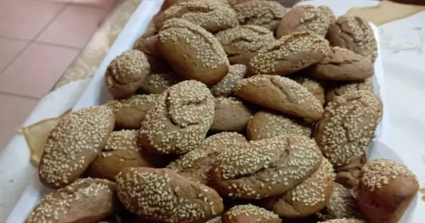 - Πλάθουμε κουλουράκια και πασπαλίζουμε με σουσάμι.