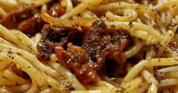Το αποτέλεσμα είναι μια μακαρονάδα γεμάτη άρωμα και γεύση που δύσκολα μένει στο πιάτο.
