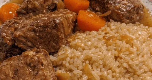Μοσχαράκι Λεμονάτο Κατσαρόλας με Αρωματικό Πιλάφι