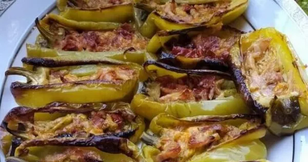 Το τριμμένο τυρί τσένταρ δίνει επιπλέον νοστιμιά, ενώ η κρέμα γάλακτος κάνει τη γέμιση πιο κρεμώδη. Στον φούρνο οι πιπεριές μαλακώνουν και η γέμιση ροδίζει, δημιουργώντας ένα πιάτο που είναι ιδανικό είτε ως κυρίως φαγητό είτε ως απολαυστικό ορεκτικό.
