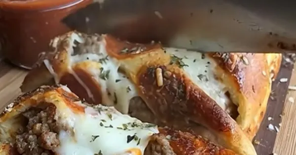 Ένα εντυπωσιακό και πεντανόστιμο “ψωμί πίτσας” γεμάτο με κιμά, πεπερόνι και λιωμένα τυριά.