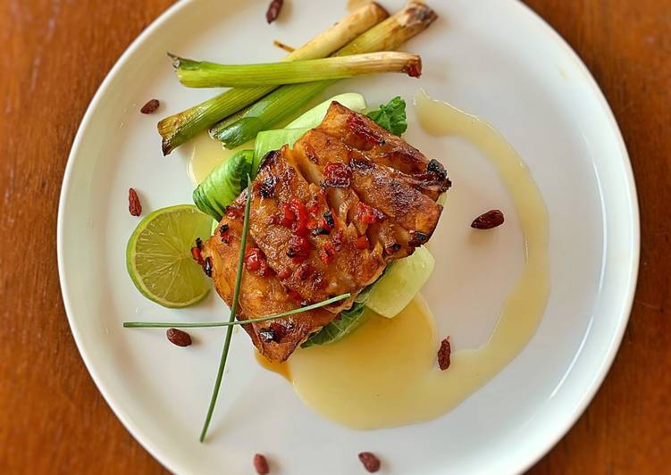 Τοποθετήστε τον μπακαλιάρο πάνω από το πακ τσόι, περιχύστε με τη σάλτσα και σκορπίστε και μερικά goji berries. Έτοιμο!