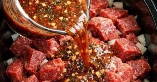 1️⃣ Καθαρίζουμε και κόβουμε το κρέας σε κύβους.