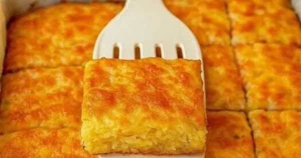 6️⃣ Αδειάζουμε το μείγμα σε λαδωμένο ταψί.