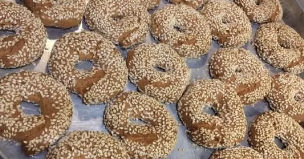 Πλάθεις τα κουλουράκια, τα περνάς από σουσάμι αν θέλεις και τα τοποθετείς σε ταψί.