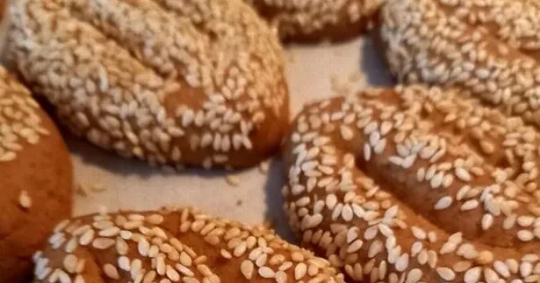 - Τα τοποθετούμε σε ταψί με λαδόκολλα και, αν θέλουμε, τα πασπαλίζουμε με σουσάμι.