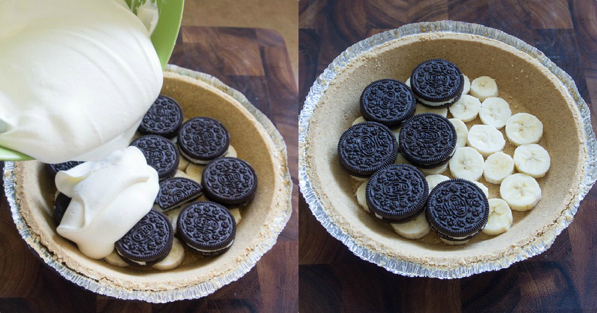 Στρώστε από πάνω τα μπισκότα Oreo, βάζοντας στην άκρη 2 cookies .