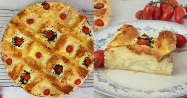 Μια πρωτότυπη και πεντανόστιμη συνταγή για τυρόπιτα με ντοματίνια και κρεμώδη γέμιση που θα σας τρέχουν τα σάλια μόνο και μόνο με την μυρωδιά της. Με την ευκαιρία, δείτε την συνταγή για τυρόπιτα έτοιμη σε 5.