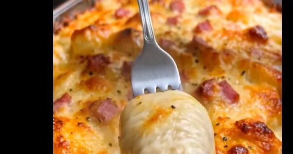 Οι τρυφερές πατάτες δένουν με τη βελούδινη σάλτσα και το αλμυρό ζαμπόν, ενώ το τυρί λιώνει από πάνω και δημιουργεί μια ακαταμάχητη, τραγανή κρούστα. Ιδανικό για καθημερινό τραπέζι, αλλά και για μπουφέ ή γιορτινό τραπέζι.