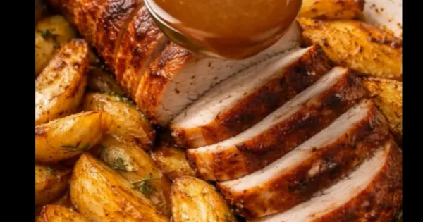 Ζουμερό χοιρινό λομό μαγειρεμένο σε απαλή, αρωματική σάλτσα με τρυφερές πατάτες – ένα πιάτο που συνδυάζει θαλπωρή και κομψότητα. Ιδανικό τόσο για το καθημερινό τραπέζι όσο και για ένα πιο ιδιαίτερο γεύμα.