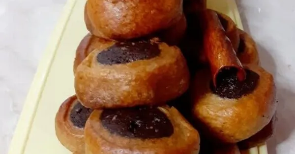 Φτιάχνουμε ρολό με τη σοκολατένια ζύμη, το τοποθετούμε πάνω στη λευκή και τυλίγουμε σε ρολό.