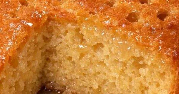 - Τρυπάμε το ζεστό κέικ με οδοντογλυφίδα.