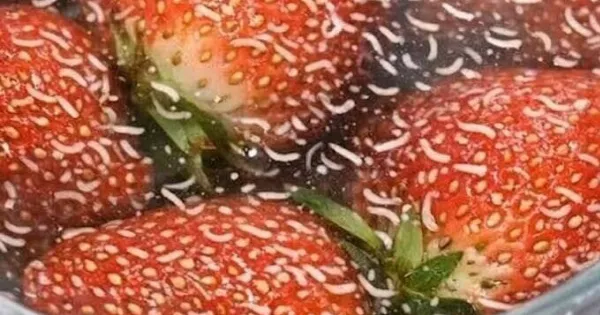 👉 Λόγω όσμωσης, οι προνύμφες βγαίνουν έξω από τη φράουλα
