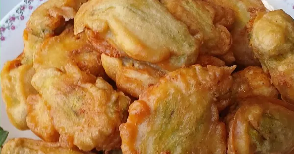 Καλοκαιρινή λιχουδιά που δεν την χορταίνεις! Τραγανοί απ’ έξω, ζουμεροί και γεμάτοι λιωμένα τυριά από μέσα. Οι κολοκυθοανθοί γίνονται πραγματικά απολαυστικοί με αυτή την απλή αλλά πεντανόστιμη γέμιση.