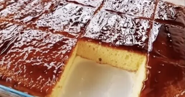 Τρυπάμε το παντεσπάνι και ρίχνουμε το μείγμα.