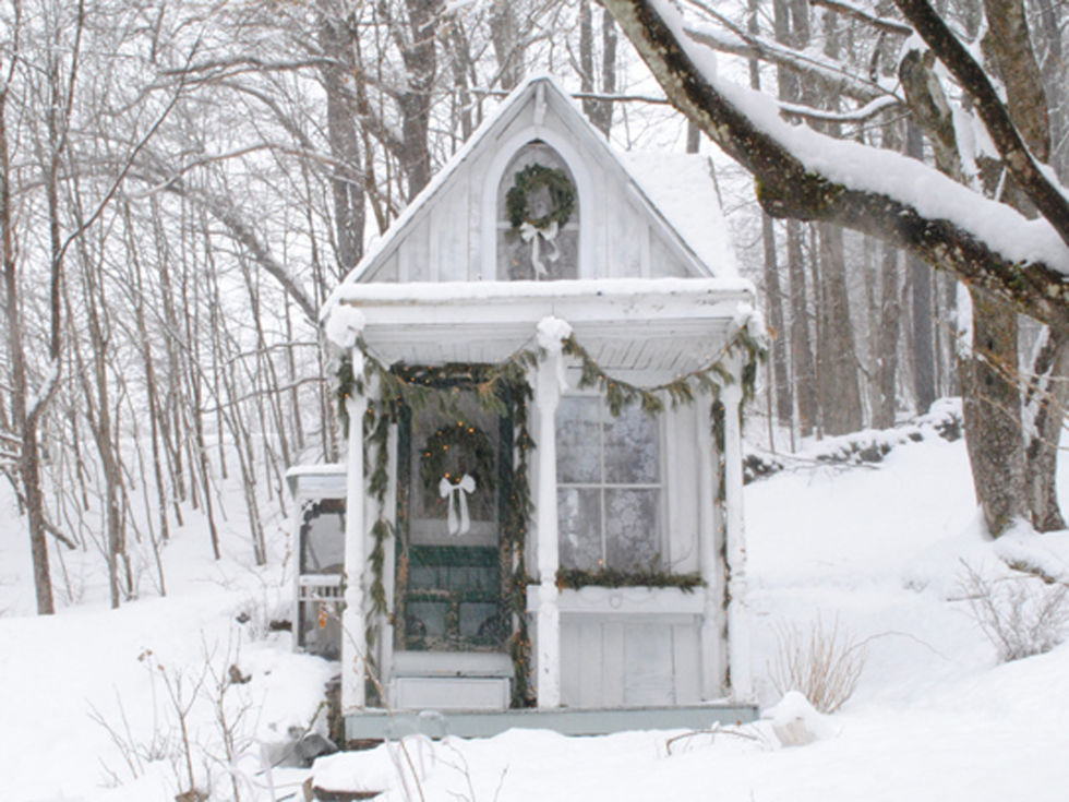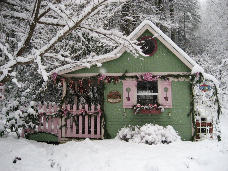 Η Βικτωριανή αρχιτεκτονική του σπιτιού δένει με το λευκό χιονισμένο τοπίο.