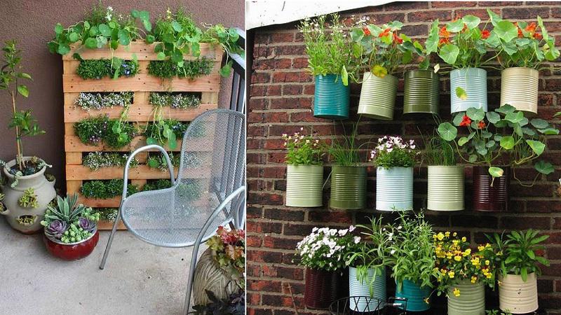 Καφάσια, μέσα απ’ τα οποία αναδύονται φυτά ή αυτοσχέδιες γλάστρες από τενεκεδάκια θα δώσουν στο μπαλκόνι σας μια καλοκαιρινή αύρα που θυμίζει χωριό.