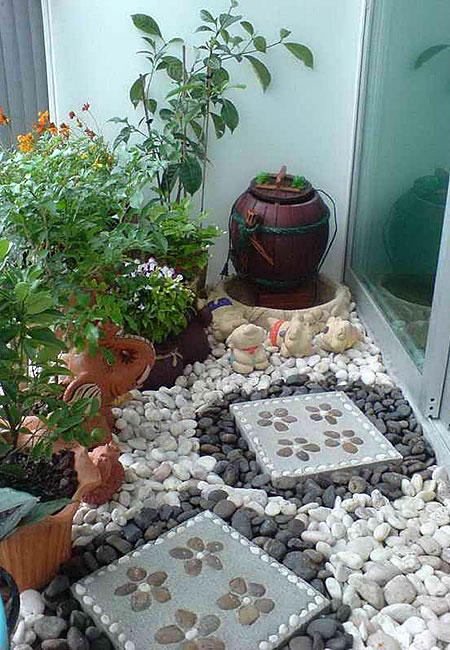 Φέρτε το υγρό στοιχείο στο μπαλκόνι σας, τοποθετώντας σε μια γλάστρα χώμα, μικρά πράσινα φυτά σε πλαστικές γλαστρούλες και νούφαρα. Για ακόμη πιο εντυπωσιακό αποτέλεσμα, μπορείτε να κάνετε μια σύνθεση από λιμνούλες με διαφορετικά φυτά.