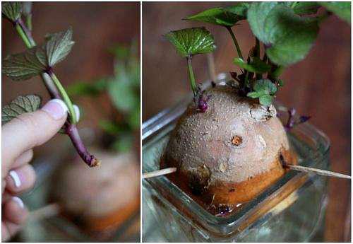 Για μια πιο ιδιαίτερη και εξωτική «πινελιά», μπορείτε να φτιάξετε τα δικά σας ξεχωριστά φυτά. Βάλτε μια γλυκοπατάτα σε νερό και δώστε μια ξεχωριστή νότα στο μπαλκόνι σας.