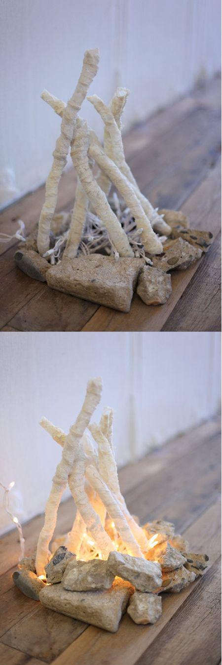 Αν είστε φαν του camping ή απλώς ψάχνετε έναν ιδιαίτερο τρόπο να φωτίσετε το μπαλκόνι, μπορείτε να φτιάξετε μια τεχνητή φωτιά. Θα χρειαστείτε λίγα κλαδιά, πετρούλες και… χριστουγεννιάτικα φωτάκια. Μια πινελιά που θα κάνει τις καλοκαιρινές βραδιές σας πιο ρομαντικές.