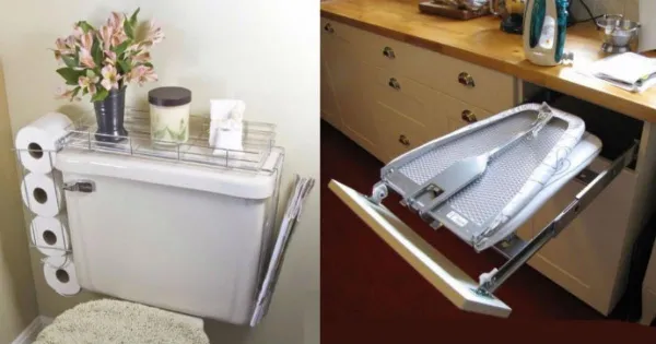 2. Αυτός ο πάγκος σιδερώματος που διπλώνει μέσα σε ένα συρτάρι , θα σας εξοικονομήσει πολύ χώρο.