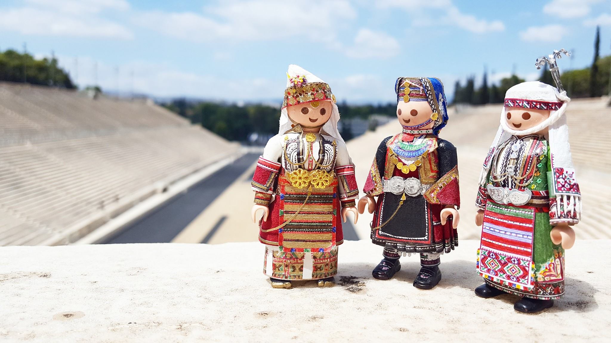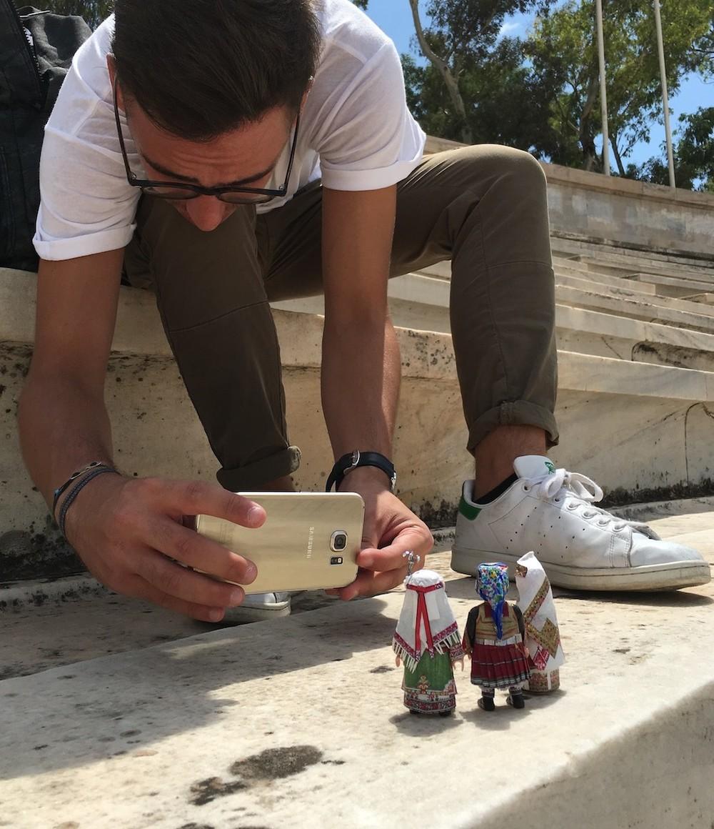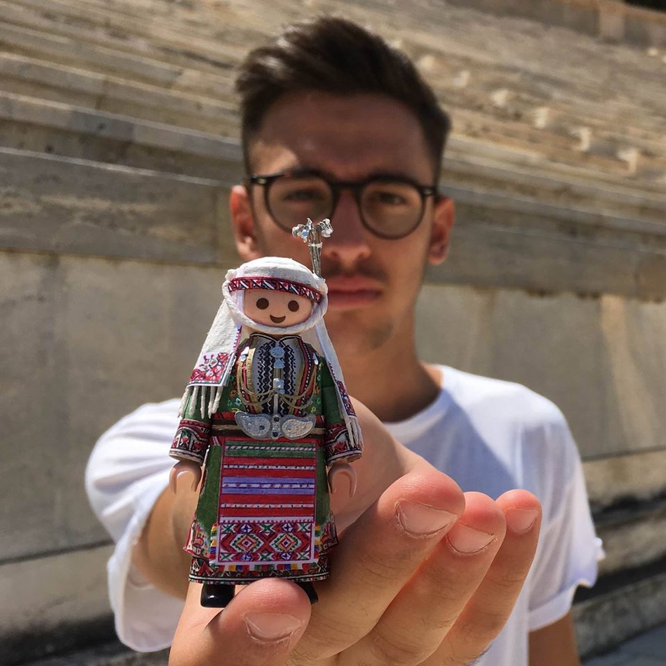 Κοίτα να δεις πόσο πολυάσχολη μπορεί να είναι η καθημερινότητα ενός 21χρονου. Τον ρωτάω αν θα είχε χρόνο να δουλέψει για την ίδια την Playmobil, να τους δίνει τέτοιες ιδέες. «Γιατί όχι;» λέει. «Αλλά ως εκτέλεση παραγωγής δεν ξέρω κατά πόσο θα ήταν εφικτό να αποδοθεί τόση λεπτομέρεια με πλαστικά υλικά. Πώς θα ήταν τα κεντήματα, τα μαντίλια, όλα αυτά, σε πλαστικό; Θα έμοιαζαν, αλλά δεν θα ήταν παραδοσιακές φορεσιές».