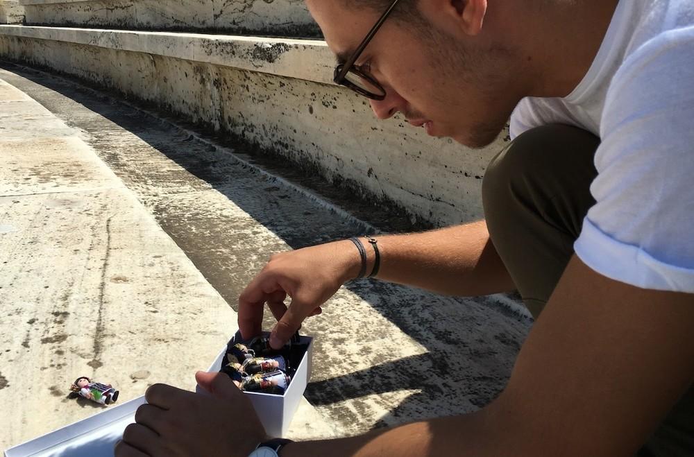 Η μέρα που τα φωτογραφίσαμε ήταν τις προάλλες που είχε αέρα στην Αθήνα, αυγουστιάτικα μελτεμάκια που λένε, κι ο Πέτρος τα πρόσεχε να μην πέσουν, έτσι όπως τα στοίχιζε ένα ένα, λες κι ήταν κανονικά παιδιά. Τα έβγαζε από τα κουτάκια τους, μόνο πικέ κουβερτούλες δεν τους έχει φτιάξει για να ξαπλώνουν στα μαλακά, αλλά λογικό, ξέρεις τι είναι να κάνεις νανοχειροτεχνία; Δεν ξέρεις, και θα μας πει ο Πέτρος: