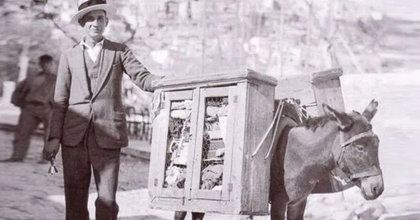 Το κινητό ψιλικατζίδικο της εποχής, Πειραιάς, 1950